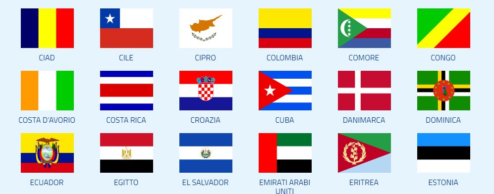 Dopo aver scelto la tua destinazione cliccando sulla bandiera dalla pagina CERCA PAESE, si aprirà una ulteriore serie di pulsanti…